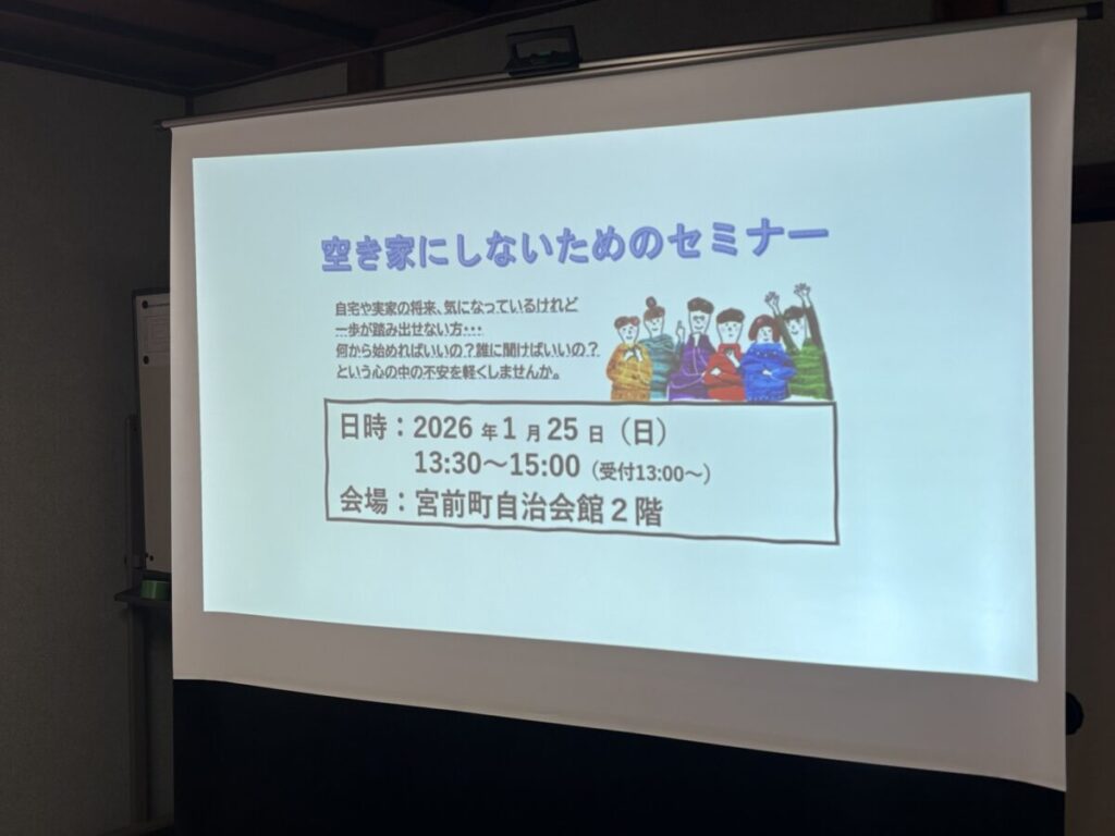 昨日に続いて、亀岡市宮前町で空き家セミナーです。今回は、南丹広域振興局さんにご依頼いただきました。