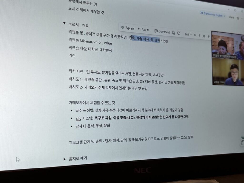 京都中央古民再生協会と韓国の延世大学建築家ジュオン先生との古民家活用プロジェクトが進んでいます。