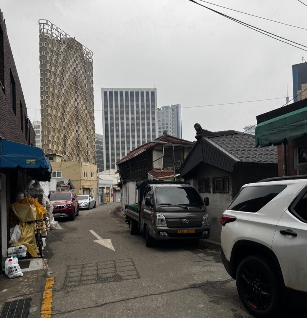 高層ビルの直ぐ隣にも古民家の集落が点在します。